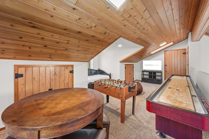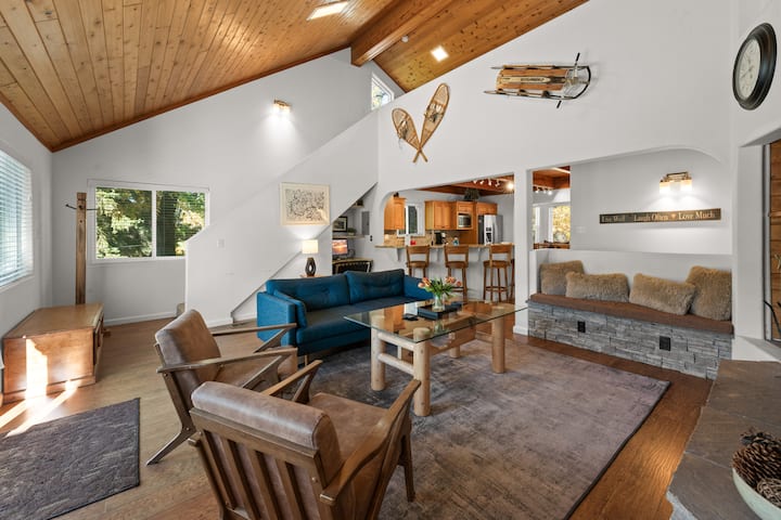 在大熊山度假村(Big Bear Mountain Retreat)体验高山生活,这是一座豪华的5卧/3卫房源,距离熊山滑雪度假村(Bear Mountain Ski Resort)仅几步之遥。 最多可供10位房客入住,提供带石头壁炉的开放式起居空间。 享受开放式厨房和宽敞的用餐区。 您可以在桌上足球和沙狐球上享受夜晚,或在松树环绕的甲板上放松身心。 步行即可抵达电梯,探索几分钟路程的村庄,全年享受您的家人将铭记的山区奢华