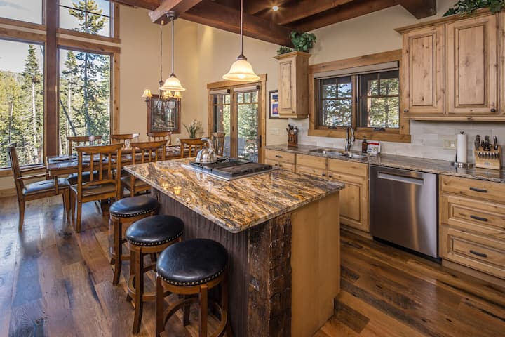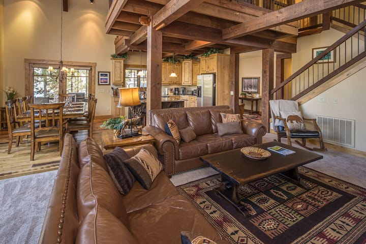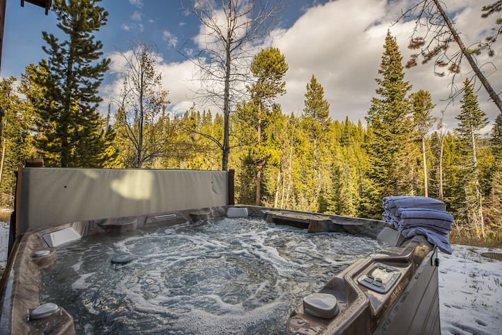 Moosewood Retreat坐落在松树和小溪之间,融合了乡村风情和现代舒适感。 这座乡村房源距离Big Sky度假村仅几分钟路程,可轻松抵达全年开放的山区乐园! 这座乡村房源距离Big Sky度假村仅几分钟路程,可轻松抵达全年开放的山区乐园! 室内高高的天花板上有外露的横梁和宽敞的窗户,可欣赏到罗恩峰的壮丽景色。 起居区邀请您在舒适的沙发上,在燃木壁炉旁放松身心。 厨房和开放式用餐区为您在山上游玩一天后的聚会和娱乐创造了完美的环境。 走出房源,即可抵达环绕式露台,配备私人烧烤架和热水浴缸。 无论您是喝晨间咖啡还是夜间观星,在Moosewood Retreat度过的每一刻都能感受到蒙大拿州的美景。