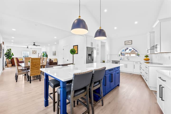 全新!可通往湖边,游戏室,可睡21人,现代!