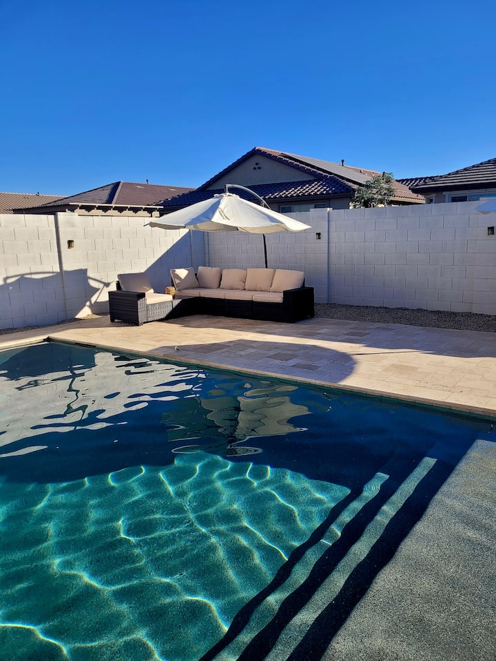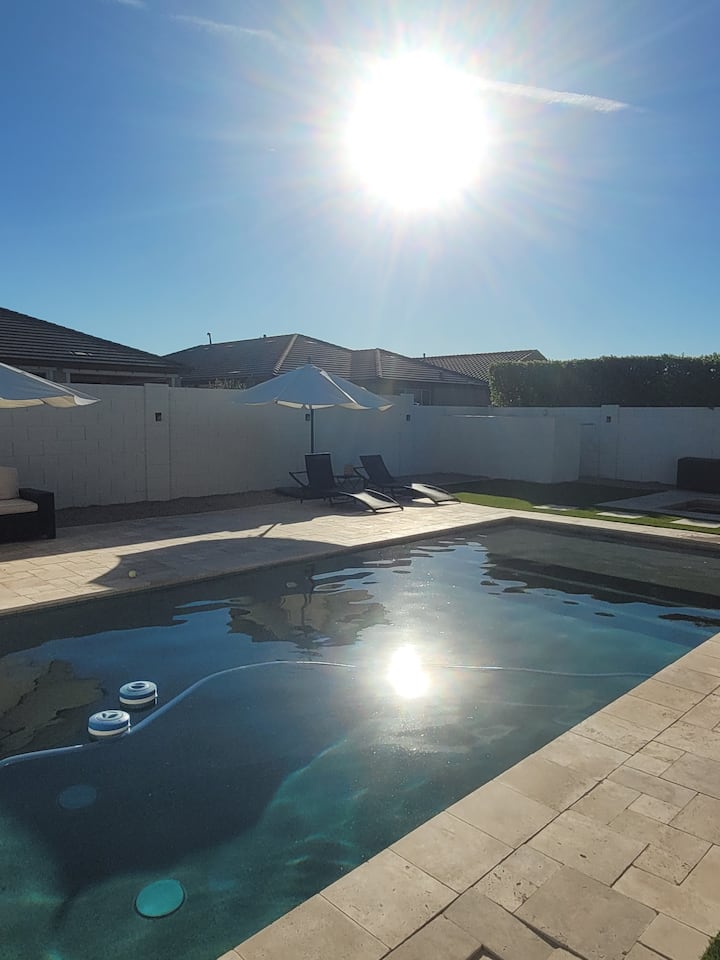欢迎来到Dream Getaway Home – Best Vacation Home,这是一处位于Harvest at Queen Creek社区的时尚沙漠度假屋。 这栋美丽的4卧室房源兼具舒适性和便利性,距离施内普夫农场(Schnepf Farms)和皇后溪橄榄油厂(Queen Creek Olive Mill)仅几分钟路程。