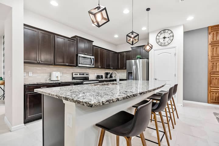 这栋5卧室、4卫生间的联排别墅位于Windsor at Westside。 房客可以在Windsor at Westside享受私人泳池和度假村风格的便利设施。
