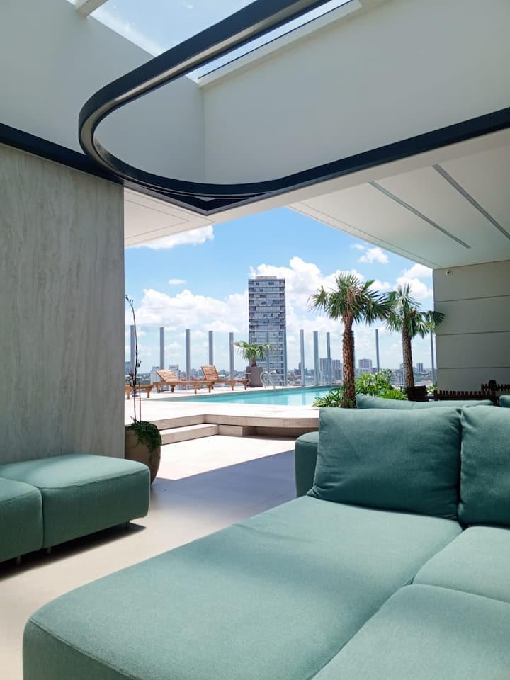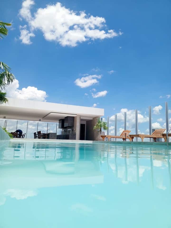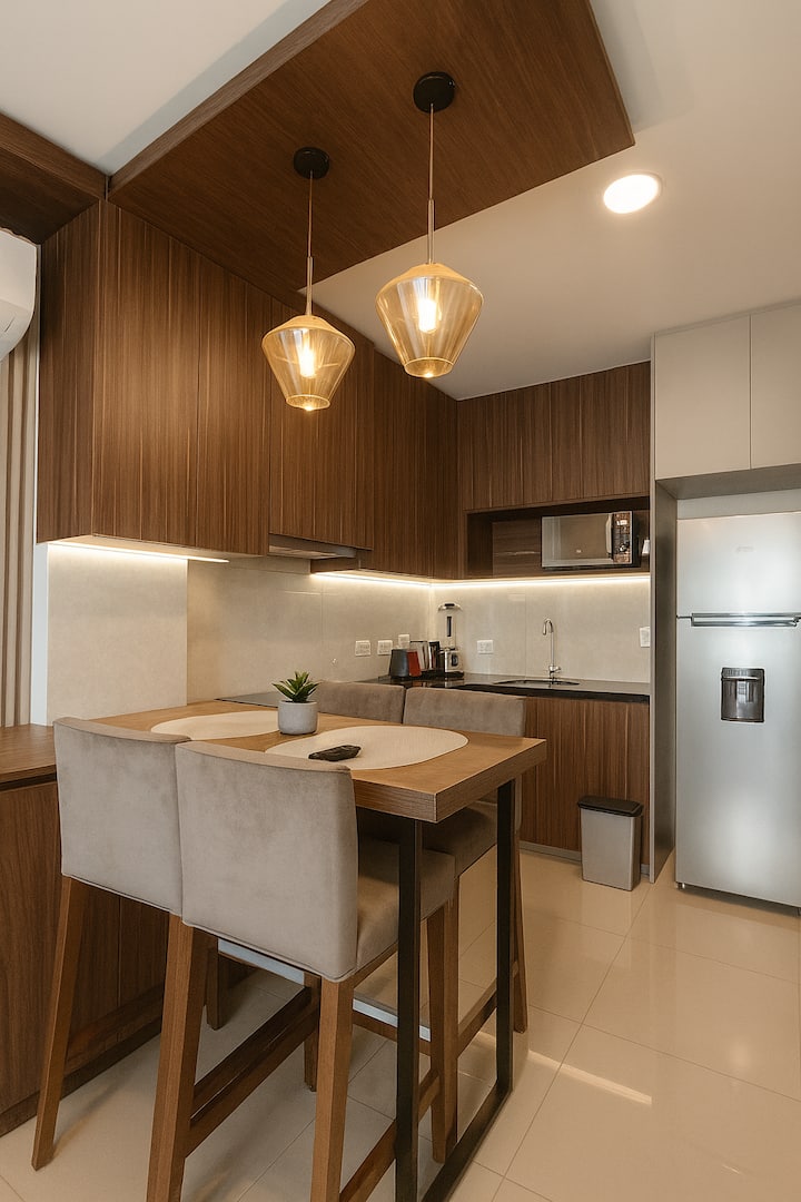 宽敞豪华的公寓位于Uptown Nuu大楼9楼。 专为寻求短期或长期住宿的高管或旅行者设计,兼具优雅、舒适和实用性。 配备一张标准双人床、智能电视、无线网络、设备齐全的厨房、洗衣区、带热水的卫生间和一个可欣赏全景的独立阳台。 享受所有便利设施:游泳池、健身房、烧烤区、游戏室、扑克室和电影院。 位于Equipetrol的中心。