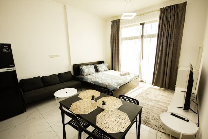 这套装修精美的单间公寓位于快速发展的迪拜工业城的Al Haseen住宅区,让您体验舒适现代的生活。 此房源专为便利和放松而设计,非常适合商务差旅人士、长期房客以及希望在靠近主要工业和商业中心的地方享受宁静住宿的游客。