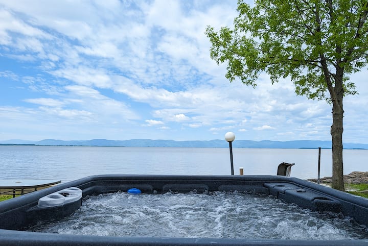 1卧室湖景小屋,带热水浴缸、空调和火坑