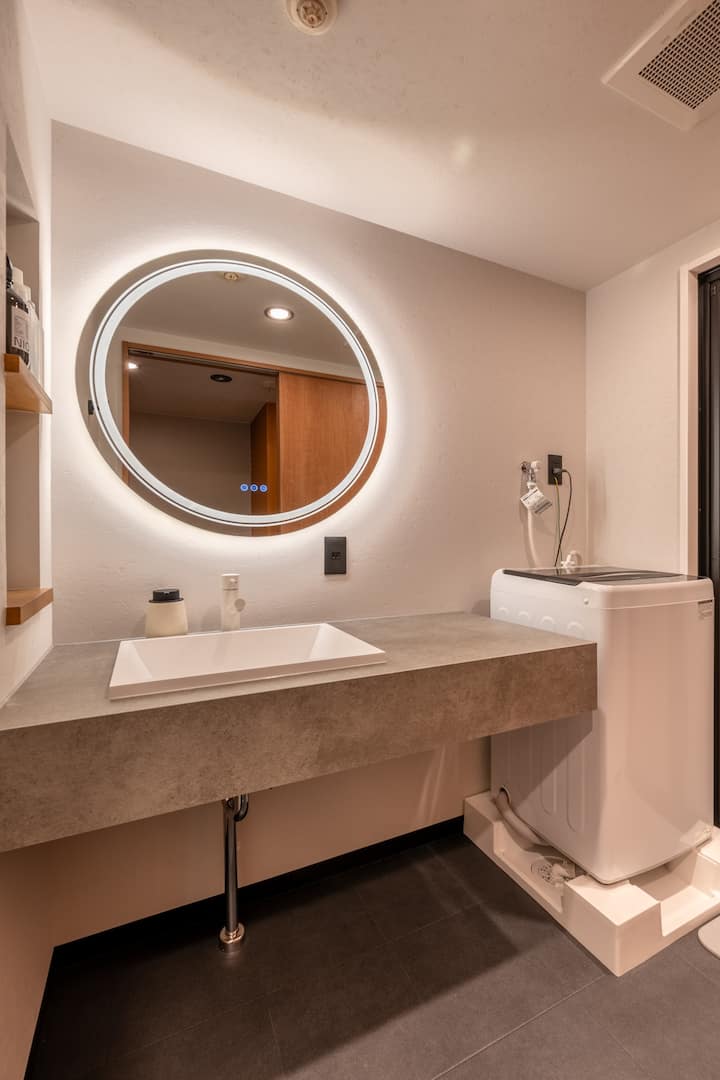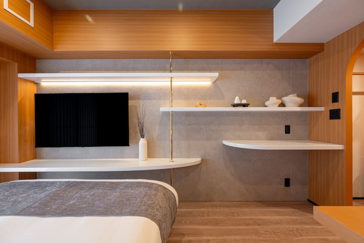 这套舒适的木质主题单间公寓位于秋叶原和御徒町附近,可轻松抵达多条火车线路,为您提供平静而现代的住宿体验。 25平方米的房间内有一张标准双人床、书桌、55英寸电视和打印机。 厨房配有燃气灶、微波炉、烤面包机、BALMUDA水壶、电饭煲和炊具。 提供淋浴间、独立卫生间、洗衣机和便利设施。 柔和的照明和天然木材营造出一个放松的空间,非常适合商务和休闲。