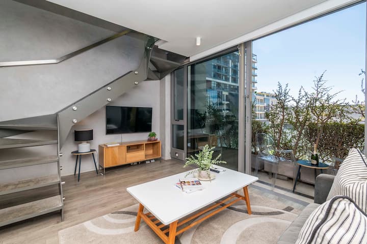 这套时尚的一居室阁楼公寓位于市中心,是一处明亮、现代化的度假胜地。 房源采用简洁的线条和温馨的极简主义装饰,从您走进来的那一刻起,房源就显得开放通风。 双层天花板和大窗户带来美丽的自然光线,为工作和放松创造了完美的环境。