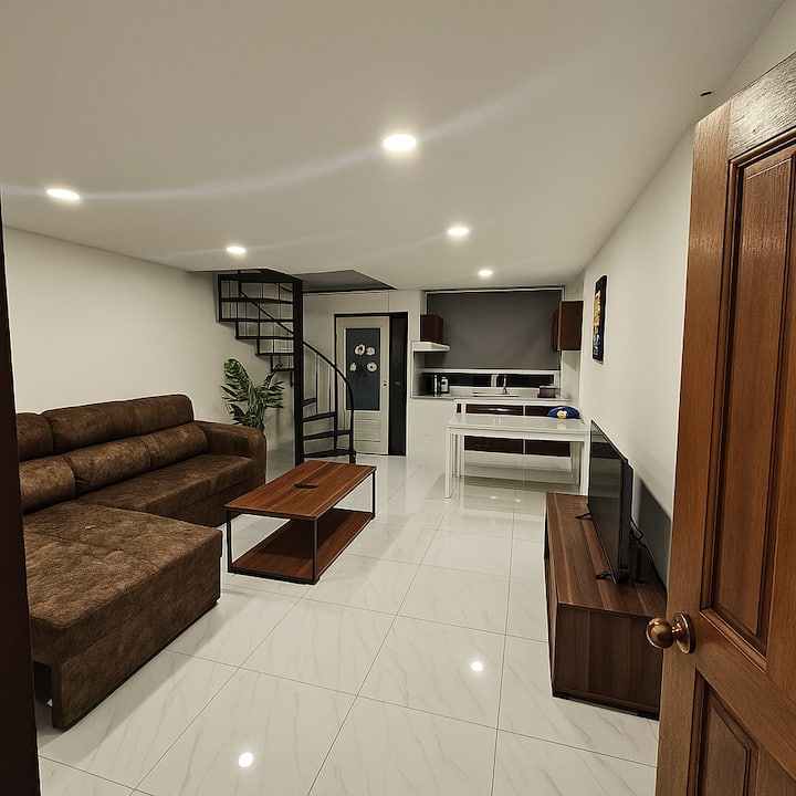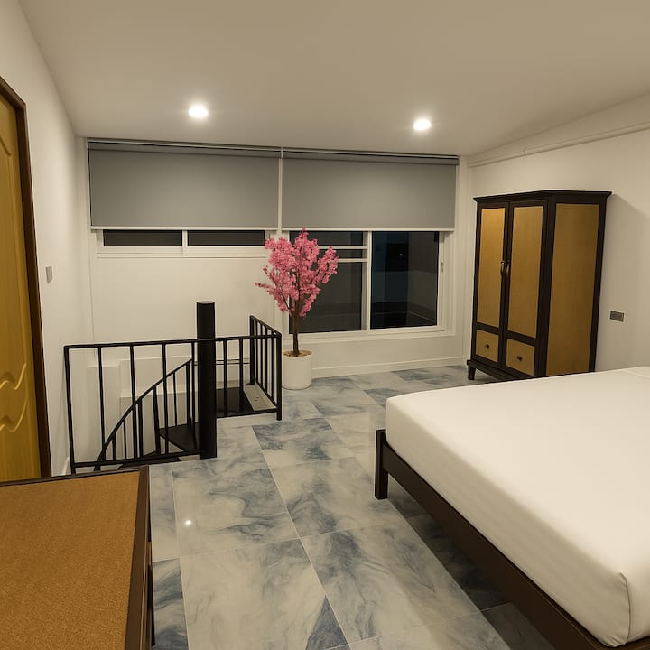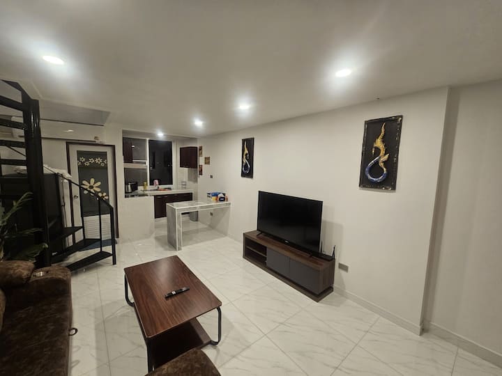 靠近海滩的舒适现代大型复式公寓。