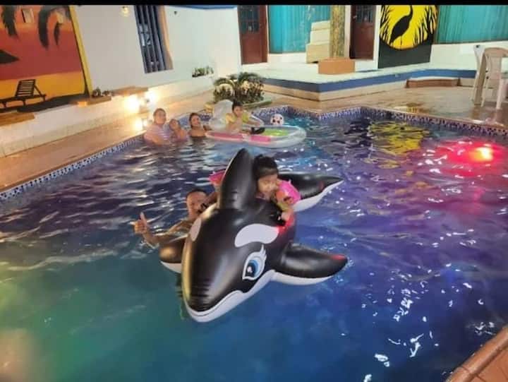靠近海滩的酒店,配有游泳池和卡拉OK