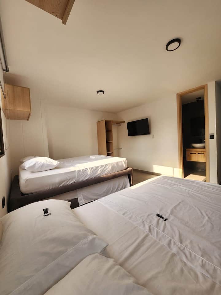 哥伦比亚桑坦德Bucaramanga的客用套房里的独立房间