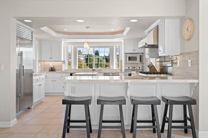 逃离喧嚣,来到这座迷人的4卧室天堂,享受私人泳池、篝火坑和水疗! 非常适合家人或朋友入住,您可以在游泳、泡澡和欣赏湖景时尽情放松身心。 享受现代舒适、舒适的起居区、设备齐全的厨房、温馨的卧室,以及可欣赏美景的甲板和阳台。 车库加上宽敞的车道最多可停8辆汽车,并配有电动汽车充电器。 在泳池边休息,在水疗中心放松身心,或在篝火堆周围聚会,在✨星空下度过有趣、奢华、难忘的夜晚。