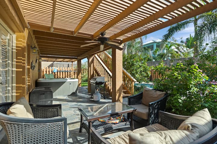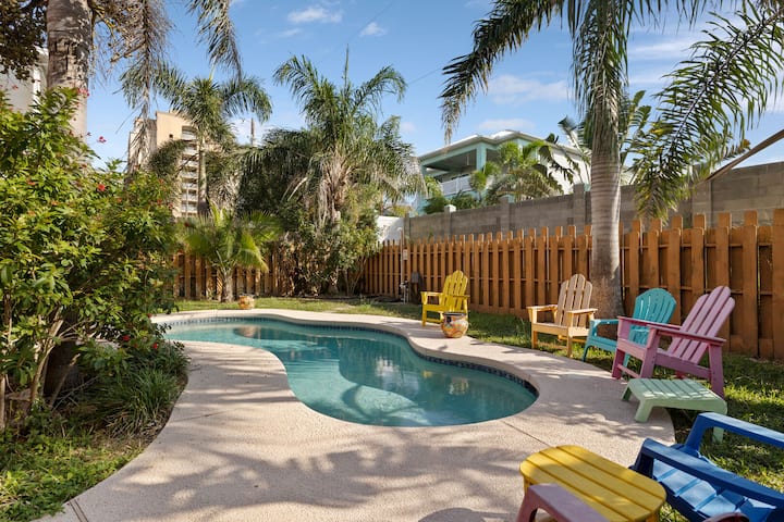 明亮的海滩天堂,带泳池、热水浴缸,可携带宠物入住