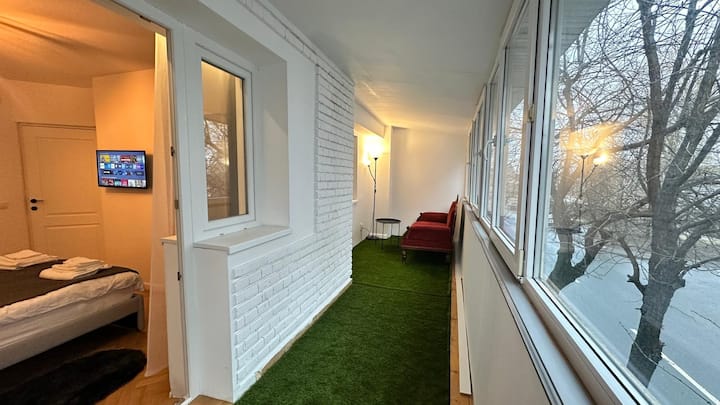 * * 3 Oaks公寓* * –舒适、新装修的空间,距离大广场(Piața Mare)仅10分钟路程,距离购物中心仅4分钟路程,距离火车站仅7分钟路程。 设有2间卧室、客厅、设备齐全的厨房、浴室+独立卫生间、橡木地板、**高速无线网络**和**所有房间均配备智能电视**。 非常适合4–5位房客入住,位于安静的中心街区。