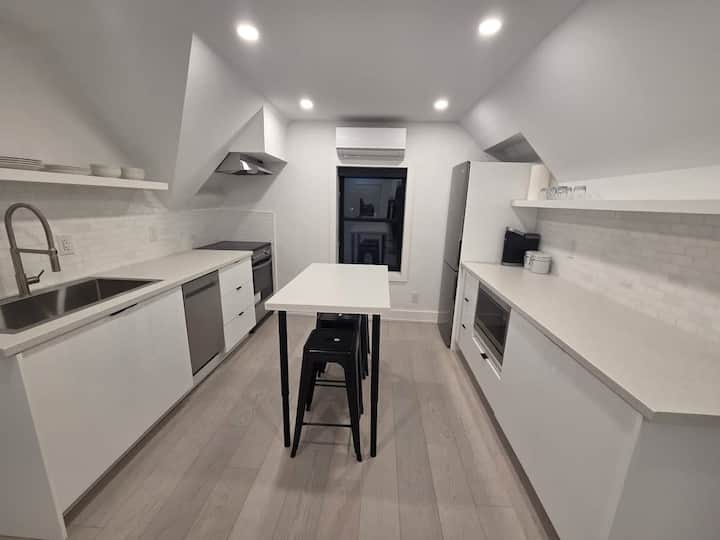 位于莱斯利维尔(Leslieville)市中心的迷人一卧室楼上公寓。 此房源距离皇后街东部商店、咖啡馆和交通工具仅几步之遥,配备了全功能厨房、舒适的起居区和智能电视。