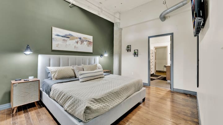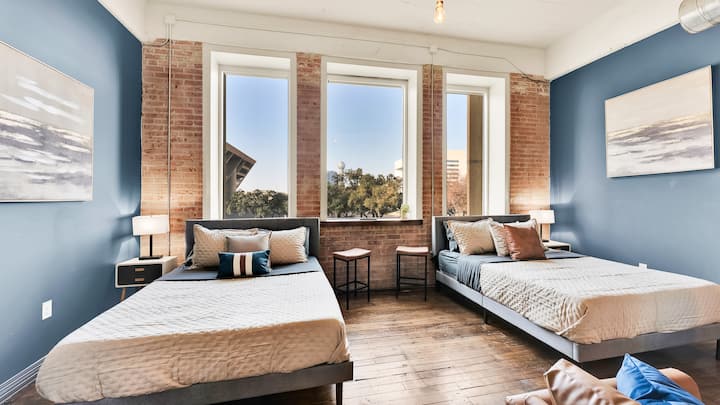 欢迎来到DISTRICT LOFTS DALLAS - 2026年世界杯期间,入住达拉斯市中心。 在市区庆祝世界杯的活力,步行前往顶级酒吧和餐厅,然后轻松乘车20分钟前往AT&T体育场,无需担心交通拥堵、停车压力或赛后交通。 步行5分钟即可抵达凯·贝利·哈奇森会议中心。 享受免费代客泊车、健身房和游泳池。 便利的设施和独特的卧室布局-整个团体都将享受中心位置!