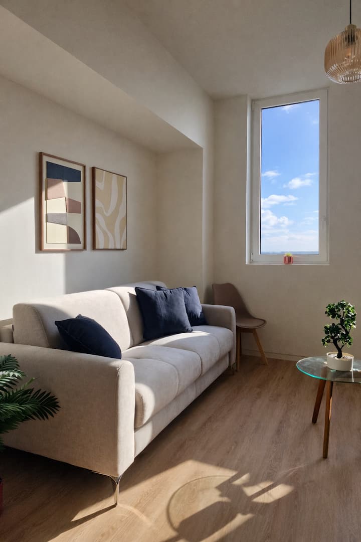 公寓位于新建的建筑内,公共区域维护良好,环境整洁安静。 位于12楼,全天自然光线充足,开阔的视野令人愉悦,让房间通风良好,令人放松。