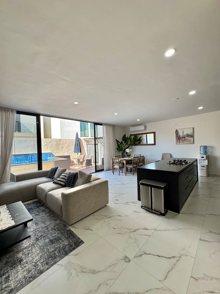 现代化的私人泳池,距离海滩仅几分钟路程