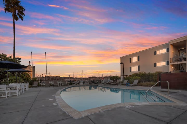 港口和海滩1卧室度假屋|泳池、水疗和阳台