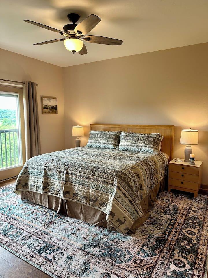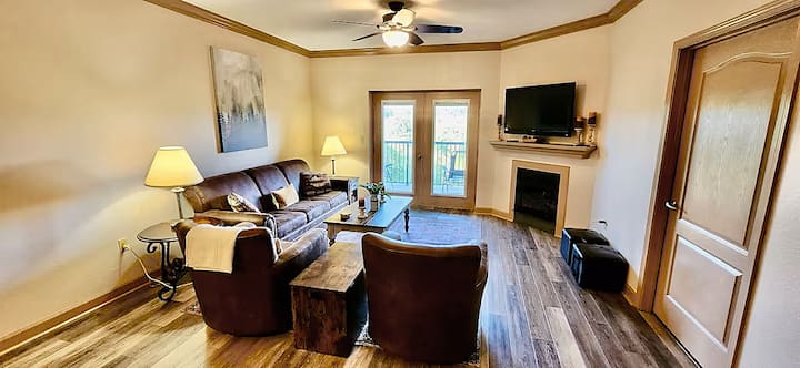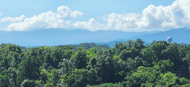 这套宽敞的公寓位于鸽子谷,可欣赏美丽的山景。 这套1卧室、1.5间浴室的公寓位于鸽子谷(Pigeon Forge)的中心地带,沿着山坡向下走不远就是帕克威(Parkway),最多可入住6人(最多4位成人)。我们位于5号楼的第七层阳台非常宁静,白天可欣赏大烟山的壮丽景色,夜间可欣赏多利伍德(Dollywood)烟花和激光秀(季节性)。 该建筑群设有室内游泳池、室外游泳池和热水浴缸(季节性)、游乐场和步行小径。可使用电梯!