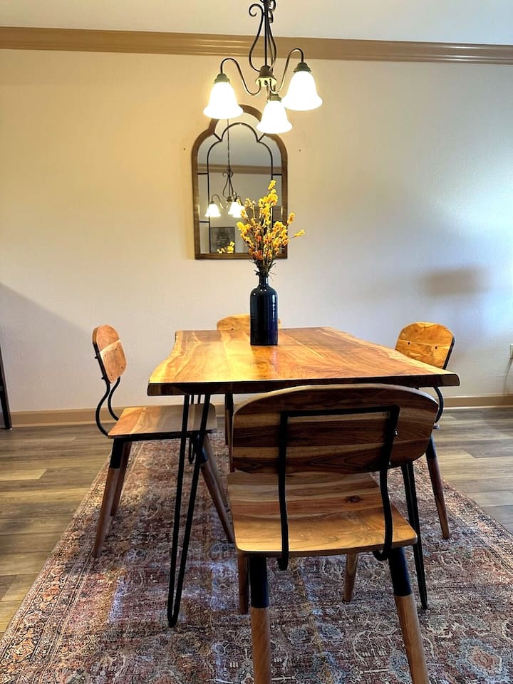 这套932平方英尺的山景公寓单元配备了所有设施,让您感受到宾至如归的温馨体验。 主卧设有一张舒适的加大双人床、大抽屉柜、床头柜和衣柜。 我们在卧室提供了一台音响机,如果房客睡眠较轻,我们建议房客自带音响机或使用手机应用程序。 卧室有带充电插头的台灯。 一般来说,房源在夜间安静祥和,但我们希望确保房客在度假期间尽可能睡个好觉。
