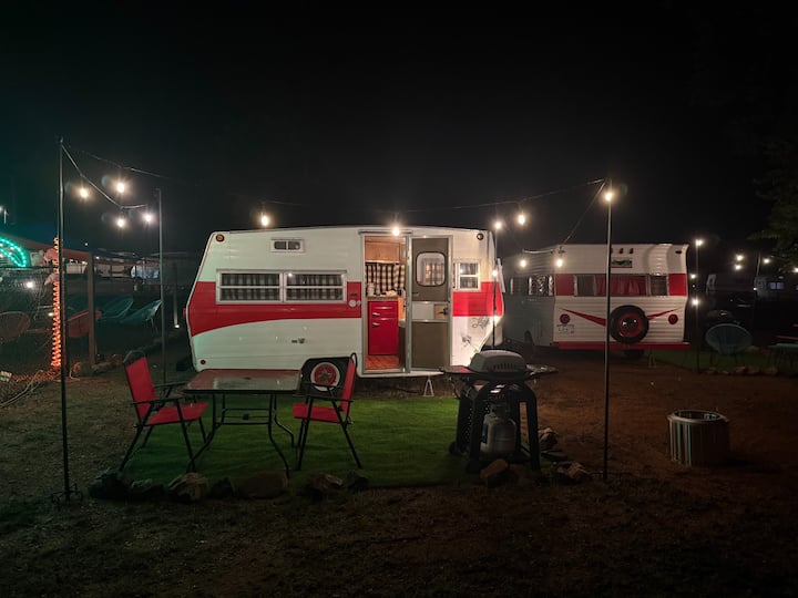 在星光复古度假村(Starlite Vintage Resort)回到过去,这里是独一无二的复古露营胜地,20世纪60年代的精神从未结束。 我们多彩的复古露营车、房车、小木屋和复古公寓系列,将怀旧与现代舒适感融为一体,距离令人惊叹的皇家峡谷仅几分钟车程。