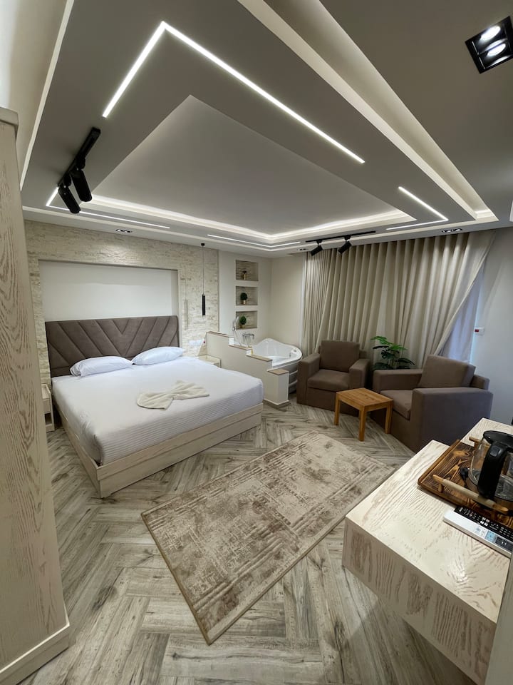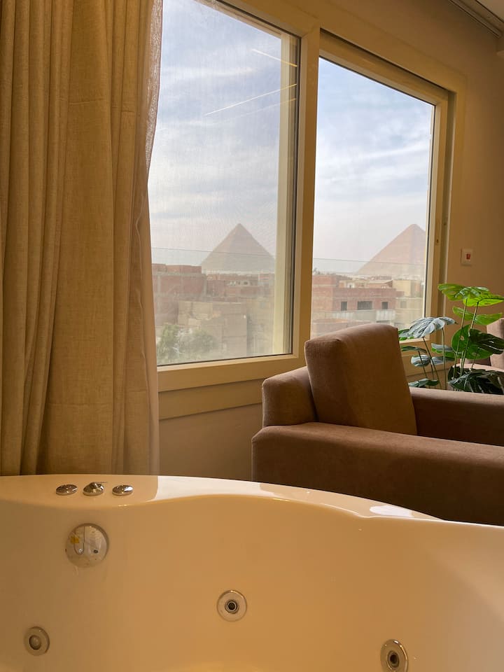 带按摩浴缸和阳台的金字塔景观房