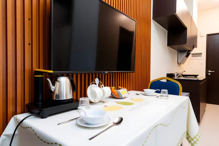 如家公寓酒店-Cubao店,2025 年 9 月全新装修,是您工作和娱乐的理想下榻之所!每间时尚的单间公寓都融合了温馨舒适的起居空间:小厨房、室内洗衣机、高速无线网络、智能电视以及可拍照的空间。公寓设有泳池、花园休息室、儿童游乐场和休闲区,并提供全天候安保服务,让您尽享放松。酒店的每个房间均配置有厨房和厨具、餐具,大厦一楼有Robinson中型超市,方便你在旅途中自己烹饪。公寓距离阿拉内塔城的餐饮、购物和交通枢纽仅几步之遥,是商务、家庭或纯粹放松身心的理想下榻之所!