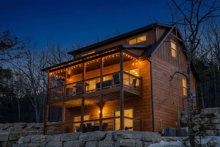 房源旨在捕捉山间小屋的魅力,同时为最多9位房客提供高档装饰,配备时尚家具、智能电视、开放式起居区以及温馨的室内和室外空间,是您布兰森度假的绝佳住所。