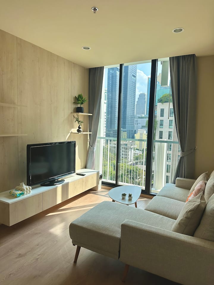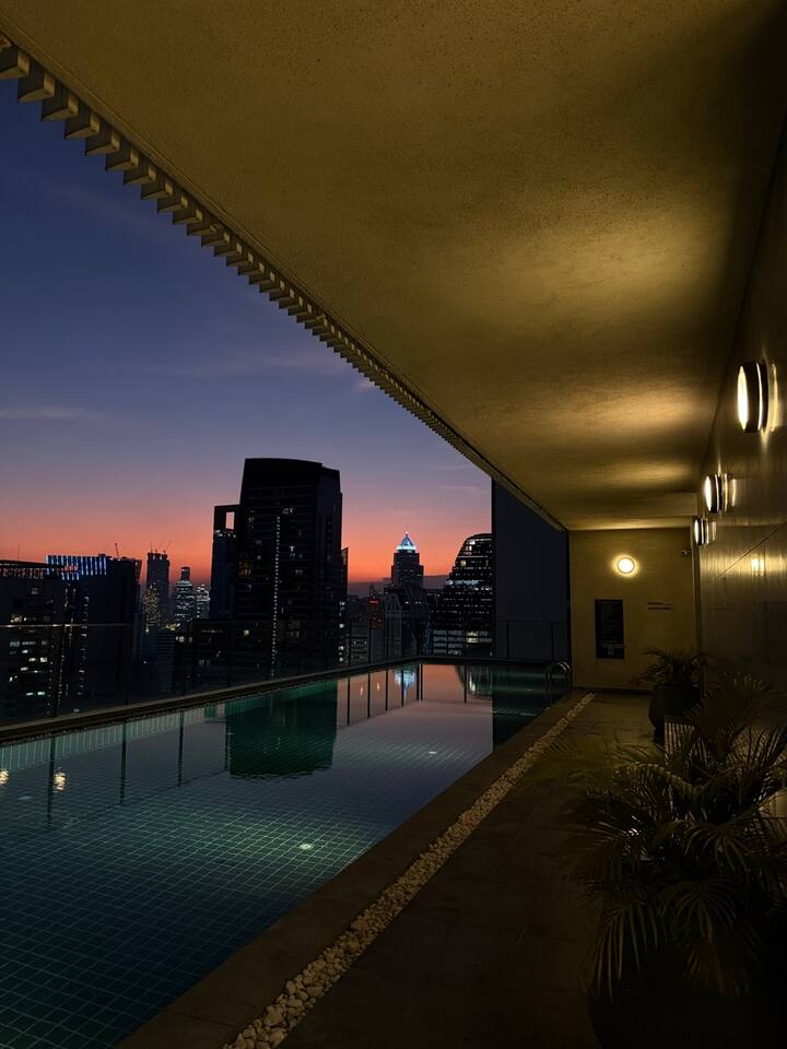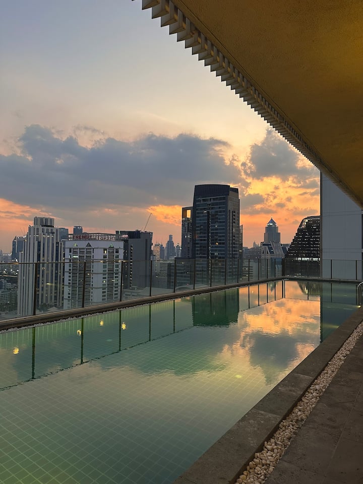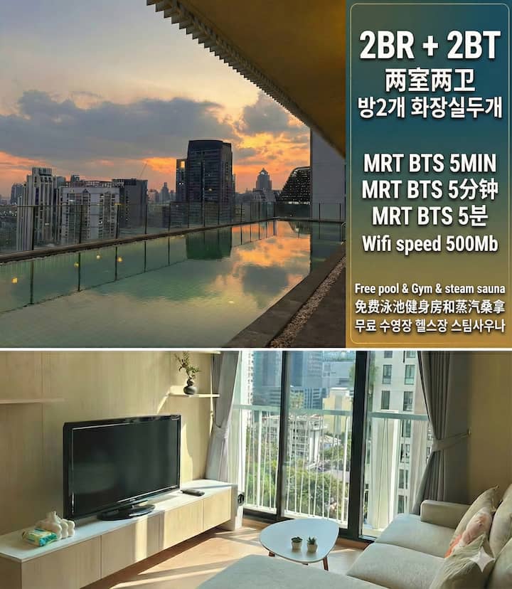 2卧室/距离阿索克(Asoke)和素坤逸(Sukhumvit)站步行5分钟/无边泳池