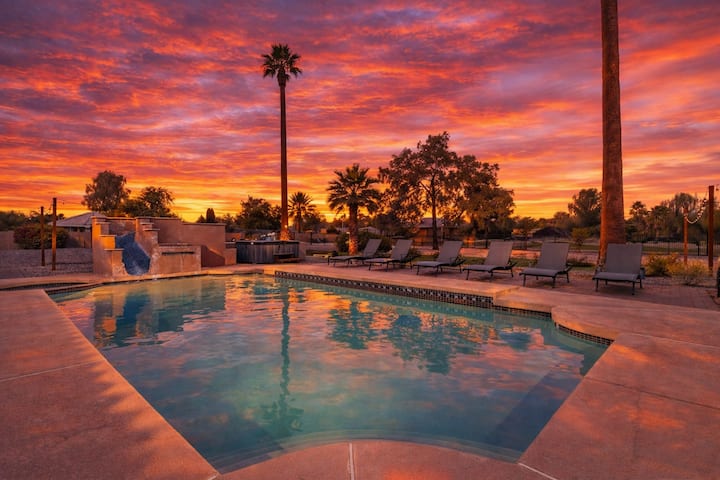 欢迎来到Varsity,您的终极斯科茨代尔游乐场,旨在为您提供不间断的乐趣和难忘的住宿体验。 您可以在泳池中玩滑水道,在热水浴缸中泡澡,或在匹克球、篮球、沙滩排球和迷你高尔夫球场之间切换,所有这些都无需离开房源。 继续比赛,然后在火坑或凉亭旁放松身心。 步行即可抵达石溪高尔夫俱乐部(Stonecreek Golf Club),附近有斯科茨代尔区(Scottsdale Quarter),可购物、用餐和享受夜生活,乐趣无穷无尽。