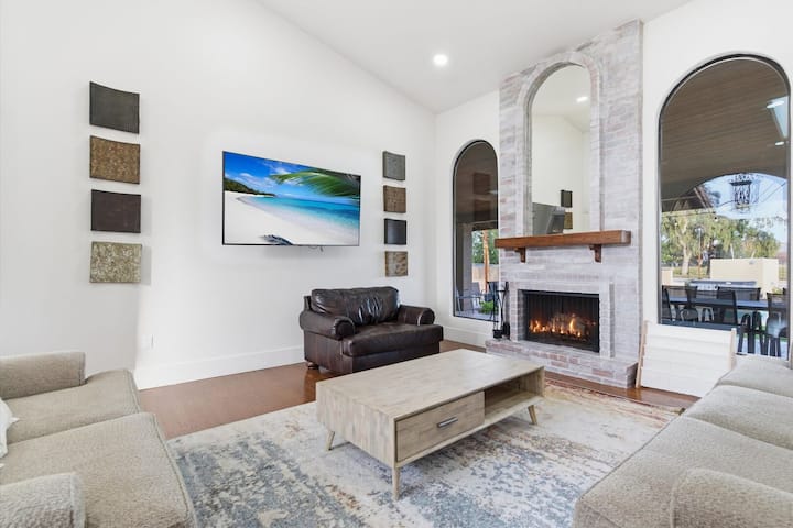 -宽敞的私人后院,配有闪闪发光的泳池、滑水道和日光躺椅,可供全天玩乐和不间断戏水(可选泳池供暖,每晚125美元)
