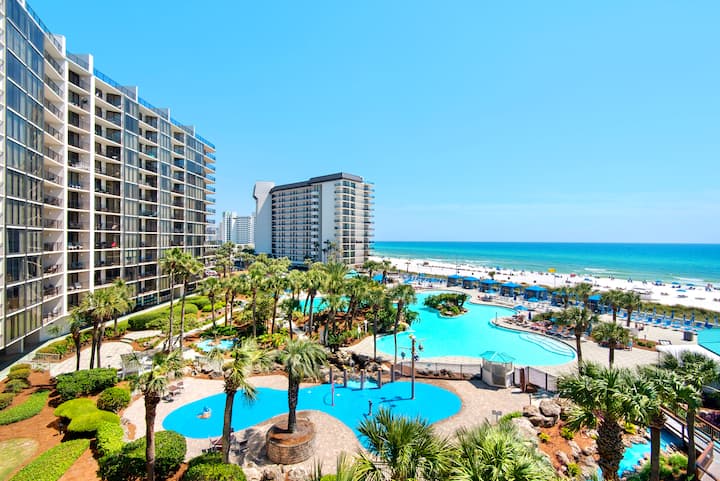 您不会想离开巴拿马城海滩的Edgewater Beach and Golf Resort! 度假村有自己的高尔夫球车班车,可带您前往您想去的地方。 拥有半英里私人海滩、11个泳池、四个热水浴缸和一个美妙的11,500平方英尺的波利尼西亚风格自由泻湖泳池,配有瀑布和光纤照明,您可以尽情休息! 漫步在六个水池的倒影中,结束美好的一天。