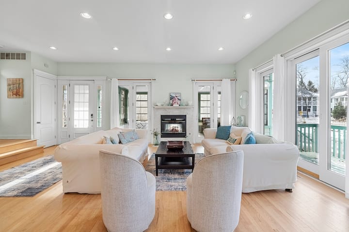 户外生活是海滩步道圣殿的亮点。 在可俯瞰瀑布公园的带顶前廊开始您的一天,然后回到3季房间,这里非常适合安静的时刻、阅读、游戏和全年轻松交谈。 石头露台后面可在户外用餐、烧烤或在树下的Solo炉灶周围聚会。 就在大门外,社区篮球圈邀请您进行友好的比赛,而附近的吊床则提供了一个放松身心的宁静场所。 周到的额外设施让您轻松打包,车库储备齐全,提供沙滩装备、自行车、马车、冰箱、沙滩椅和季节性高尔夫球车,让您轻松享受海滩漫步之旅。