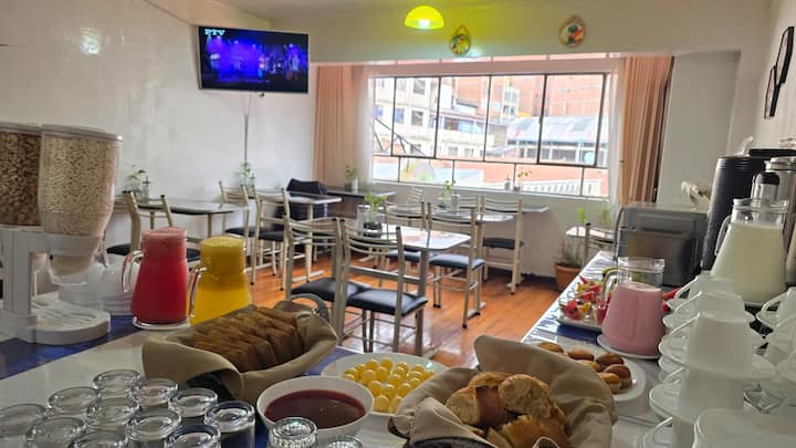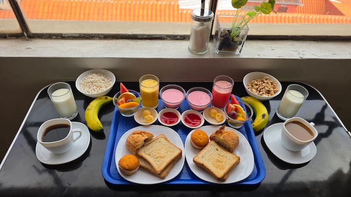 双床房,中心位置,含早餐,共用卫生间