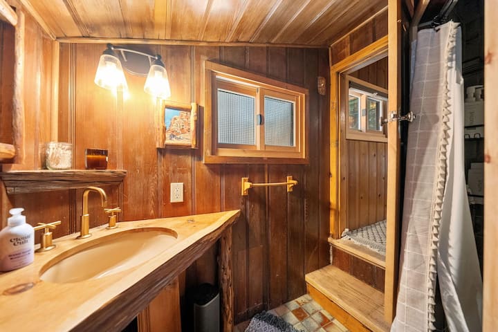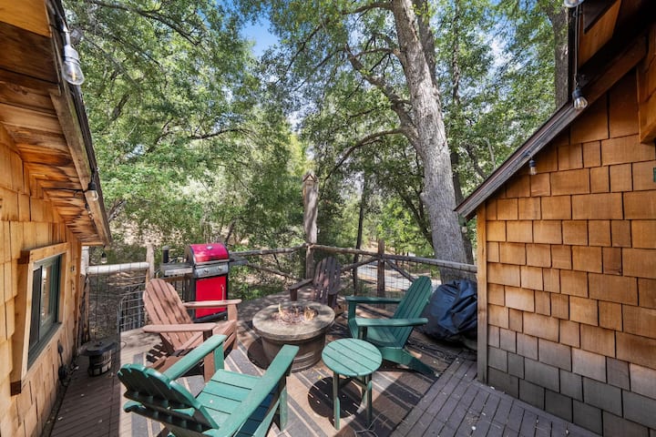前往Tree Haus,乡村风情与现代舒适融为一体,为您带来难忘的山区度假体验。 这间迷人的小屋设有2间舒适的卧室和1.5间浴室,专为放松和探险而设计。 走进客厅,您会发现拱形天花板、舒适的壁炉和沙发床,让您在探索一天后放松身心。 在用餐区享用美食,欣赏美景,配有图片窗户座位和燃木炉灶,营造更多氛围。
