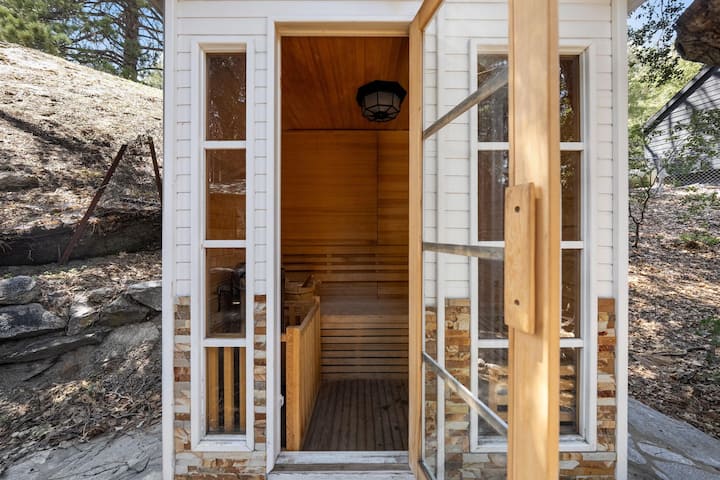 迷人的2卧室山间度假屋,拱形天花板、舒适的壁炉和高架睡眠区。 欣赏山景,在热水浴缸或桑拿房放松身心,在火坑旁放松身心。