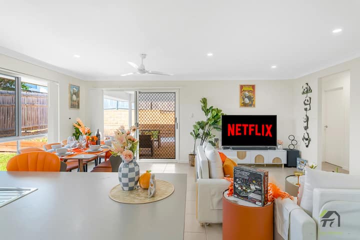房源位于黄金海岸北区 Pimpama 成熟安静社区,环境安全宜居,非常适合家庭及多人入住。开车几分钟即可上 M1 高速,轻松前往布里斯班及黄金海岸各大景点。周边配套完善,临近购物中心、超市、餐厅、公园及学校,生活便利。房屋空间宽敞,采光良好,是度假或短中期居住的理想选择