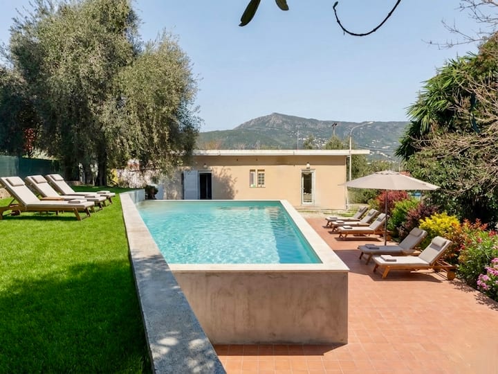 Verve别墅内部设有一层,经过现代化全面翻新,为您提供卓越的度假体验。 宽敞的休息区配备智能电视和舒适的沙发,设有设备齐全的厨房和用餐区,可供8/10人使用,直通宽敞的前院。 共有5间卧室(其中一间是独立的,设有独立入口)。 主住宿包括卧室、4间卧室、3间双人床和1间双床客房。 主卧套房设有独立淋浴间(湿房),另外2间双人卧室共用一间带淋浴的卫生间(其中一间双人卧室内还设有一个迷人的浴缸)。 双床卧室设有独立淋浴间(请注意,由于房屋布局,这间卧室没有窗户,但配备空调和通风系统。 别墅还提供一间带独立入口的套房,非常适合寻求额外隐私的情侣入住。 配备一张双人床、休息区、额外的小厨房和带淋浴的卫生间。 当然,该房源整体出租,最多可入住10位房客,而不是单独出租。 在翻修期间,我们特别注意细节和装饰,使Verve别墅成为该地区最具吸引力和地理位置优越的度假屋之一,物超所值。 为了提供额外的舒适体验,房源的卧室和休息区均配备空调(包含在房价中)。