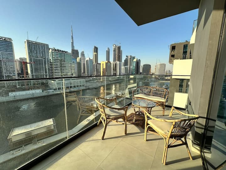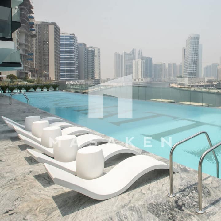 明亮的单间公寓|哈利法塔和运河景观+泳池