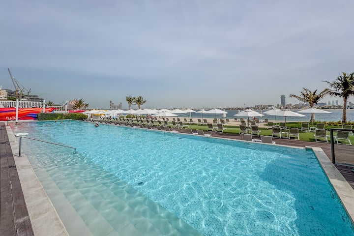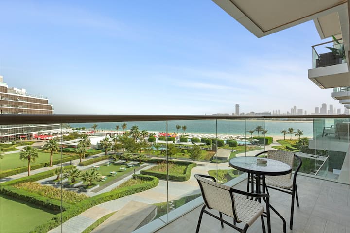 棕榈树上的迷人双卧室,带私人海滩