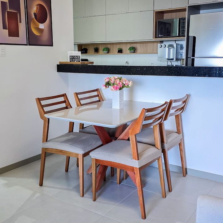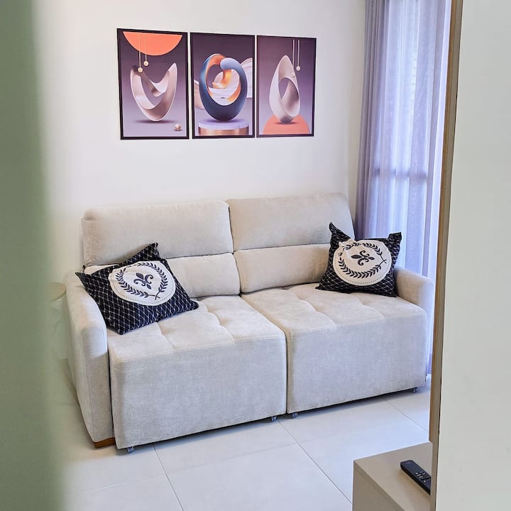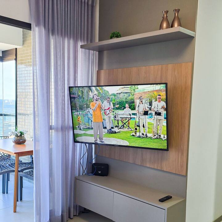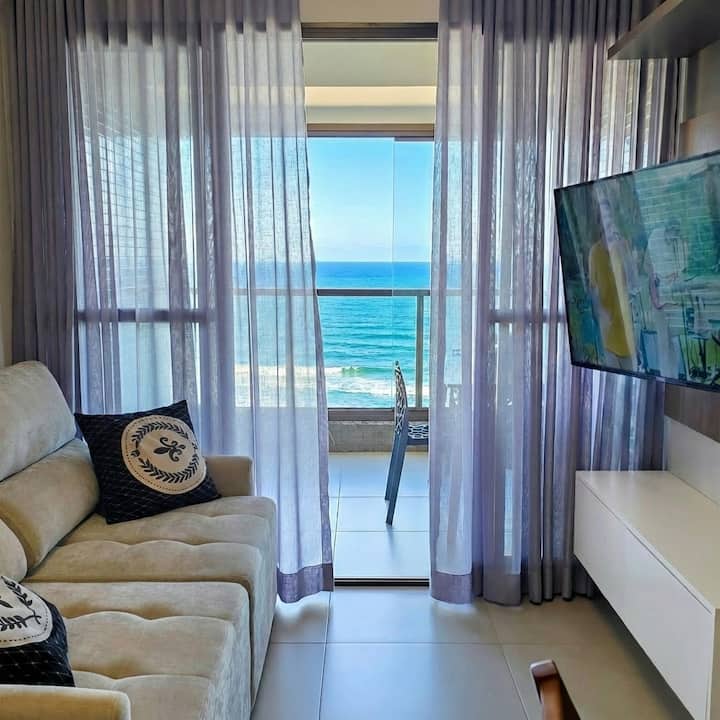 入住现代化的Ocean House,距离海边仅几步之遥。 带阳台和2个私人停车位的全新2卧室公寓。 公寓提供完整的休闲设施:无边泳池、健身中心、共享办公场所、游戏室、玩具图书馆等。 地理位置优越,靠近Jaguaribe海滩、餐厅、市场,距离萨尔瓦多机场20分钟车程。