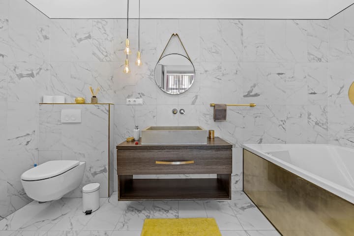 在热水浴缸中放松身心