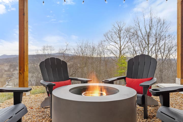 逃离喧嚣,来到被大自然环绕的时尚现代度假胜地。 享受窗户墙、带花岗岩岛的美食厨房、舒适的壁炉、多个休息室和带卫生间的卧室。 在8人热水浴缸中放松身心,在火坑旁聚会,或在整个房源内享受游戏和智能电视。
