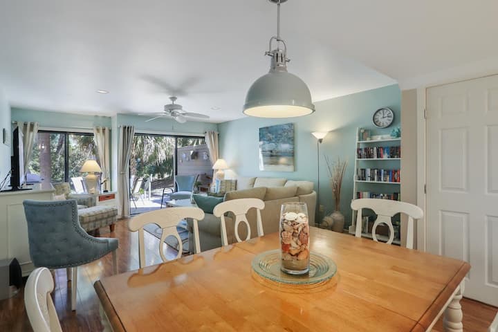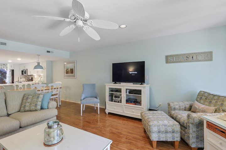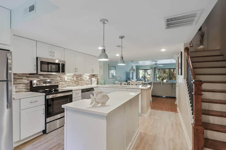该综合设施位于美丽的球道和修剪整齐的场地周围。 这栋联排别墅距离海滩、高尔夫球场、网球场和新装修的私人综合泳池仅几步之遥。 出门即可享受岛上50英里以上的自行车道。 *此房源提供位于造船厂海滩俱乐部的海滩储物柜,房客可以使用房东的海滩配件,包括椅子、雨伞和海滩玩具,这是一个巨大的优势。 如果椅子或雨伞损坏或丢失,请联系Island Getaway。 您也可以将海滩用品放在储物柜中一周,这样您就不必从房源携带沙滩椅。