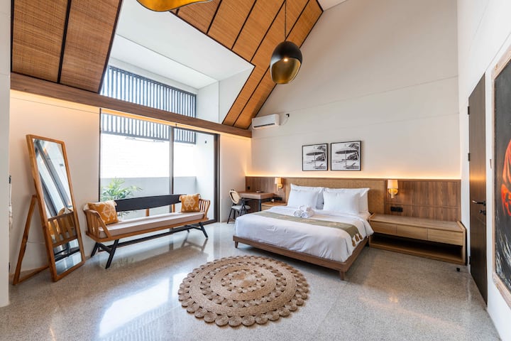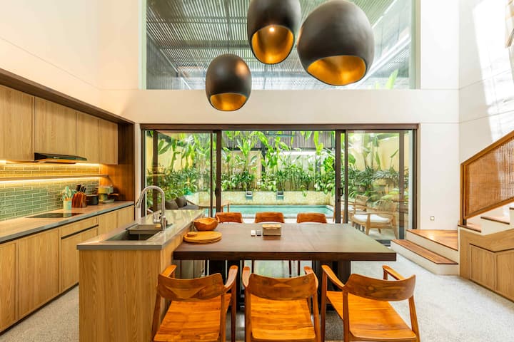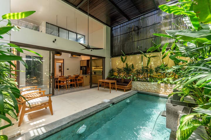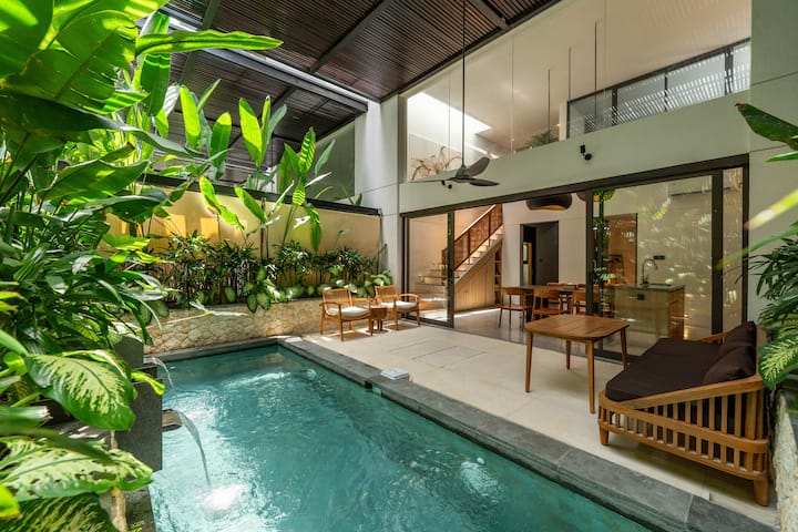 在Pasisi Unit 15探索简约与时尚的完美融合。 这座紧凑、现代化的度假屋隐藏在长谷(Canggu)的中心地带,提供三间带空调的卧室,以及主卧套房上方独特的第四间「阁楼风格」房间。 这栋别墅设有凉爽的私人泳池,四周环绕着郁郁葱葱的绿植,专为那些想要时尚实用的家庭基地的人士而设计。 无论您是来这里工作还是探索当地冲浪,这套公寓都能为您提供巴厘岛最著名地区的舒适庇护所。