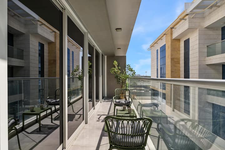 -阳台:客厅和卧室均可通往此户外空间,配有舒适的座位,可在此享受新鲜空气和天际线景观。