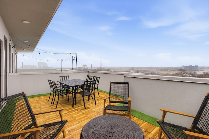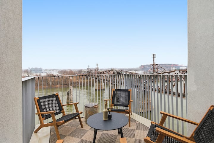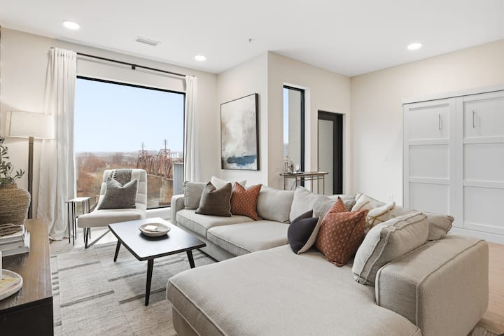 入住这间迷人的顶层公寓,步行即可到达纳什维尔市中心和日耳曼镇。 包括2个私人露台,其中一个在屋顶,配有户外座位和餐桌。 您可以一边欣赏坎伯兰河和新体育场的美景,一边享用葡萄酒。 带一个免费停车位,位于有门禁的车库内。 房间内有洗衣机和烘干机。 客厅和卧室配备电视。 步行即可到达百老汇酒吧。 靠近布鲁克林碗、Sounds棒球场、Ryman、普利司通竞技场、泰坦体育场等