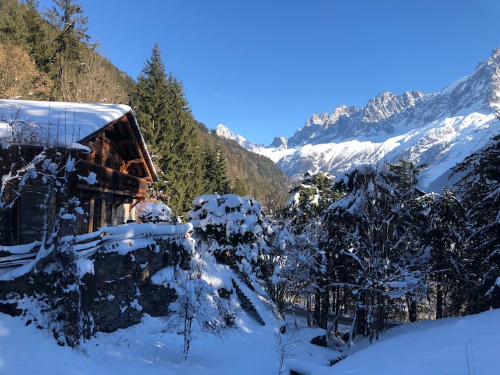 迷人的老式木石度假木屋,可欣赏勃朗峰的美景