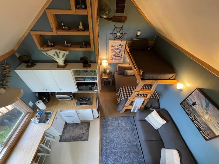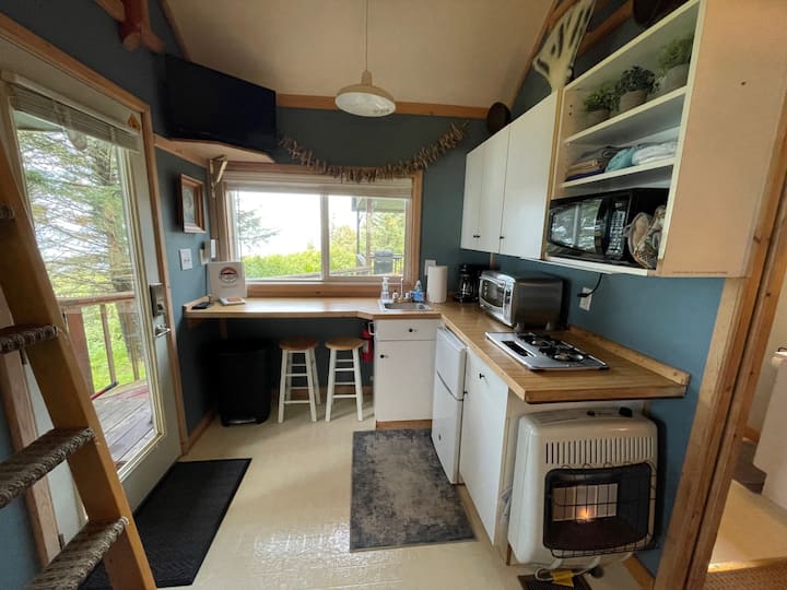 我们的住宿距离荷马( Homer ) 20分钟车程,是您开始阿拉斯加冒险的理想去处。 我们的度假小木屋坐落在悬崖上,可欣赏到世界一流的库克入口( Cook Inlet )一览无余的海景和火山。 从占地5英亩的私人度假胜地,您可以看到阿拉斯加野生动物,我们步行一英里(或骑自行车)前往锚河( Anchor River )上世界一流的钓鱼。 公共区域包括鱼类清洁站、室外消防坑和凉亭。 一英亩的草坪,周围环绕着高耸的云杉树,使我们的小木屋成为度假、婚礼或您的团体外出所需的住宿。