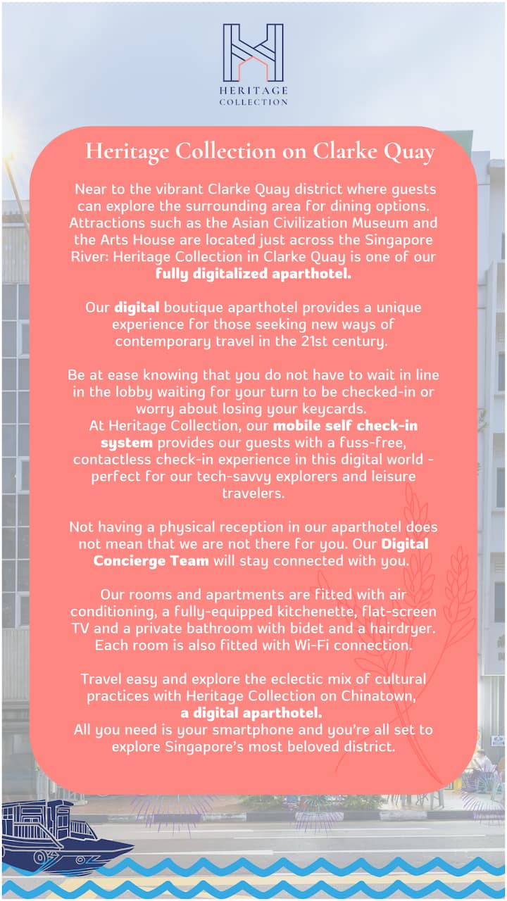 我们是Heritage Collection背后的管理团队! 我们位于新加坡中央商务区,提供干净且维护良好的住宿。 体验配备现代化设施的遗产建筑!