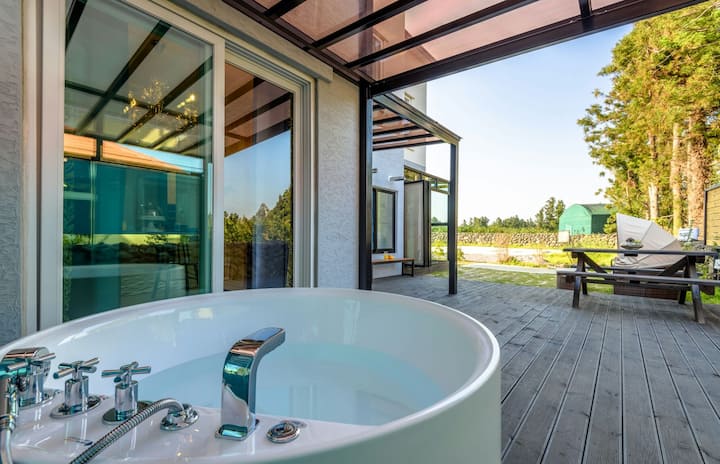 只需很短的车程即可抵达各种设施。 距离便利店、自动取款机、当地餐厅和咖啡馆仅3至5分钟路程。 距离济州岛最大的温泉(三邦山碳酸水温泉)仅5分钟路程。